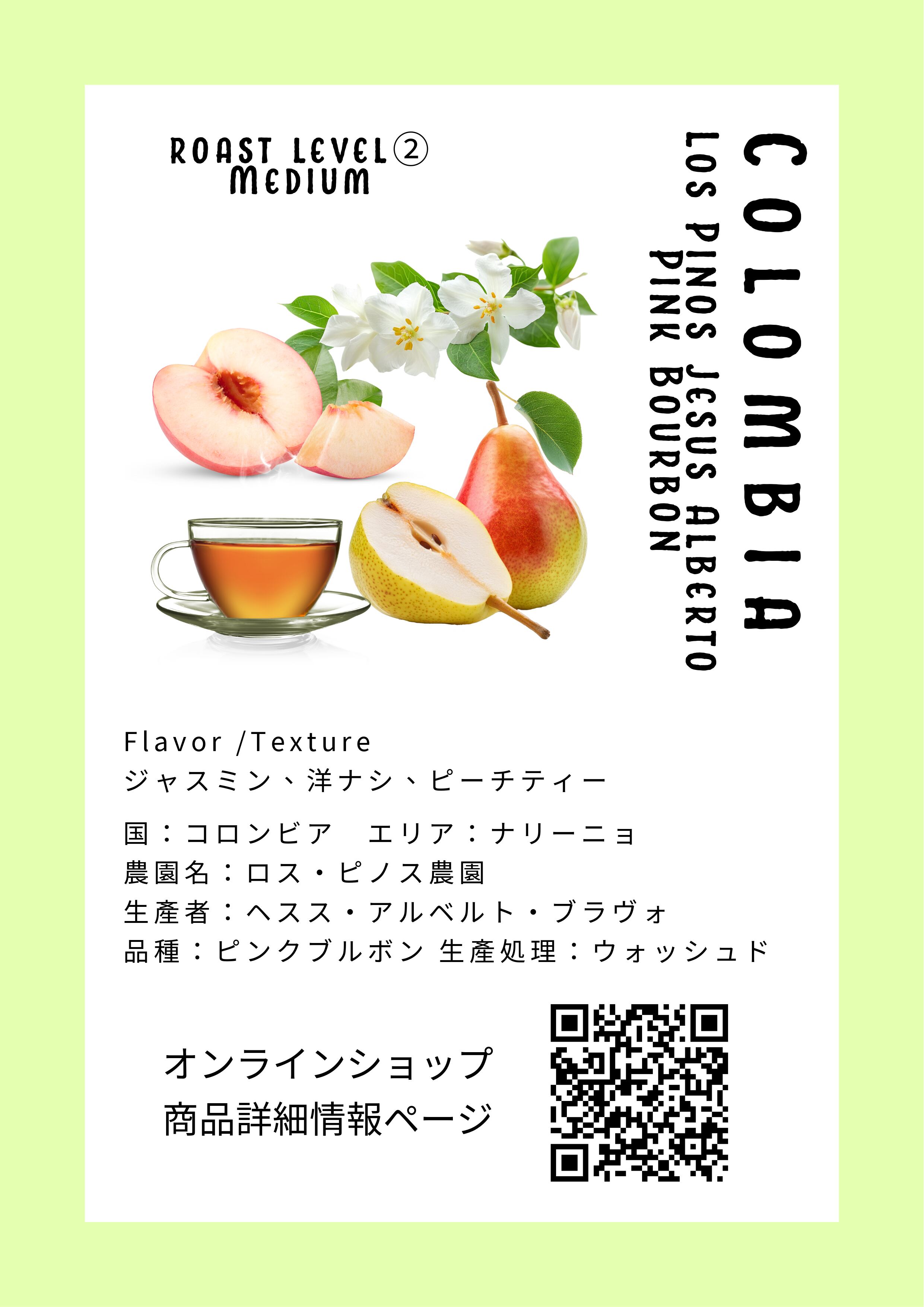コロンビア ロス・ピノス農園 ヘスス・アルベルト ピンクブルボン / 200g
